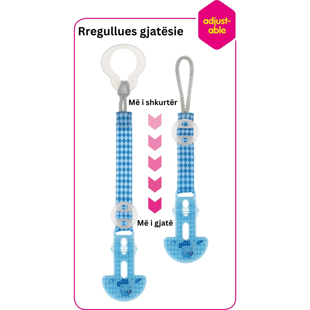 Gjatësia e zinxhirit në të gjitha kapëset MAM është brenda rregullores dhe rreziqet e mbytjes janë praktikisht të pamundura. Zinxhiri KURRË nuk duhet të zgjatet ose fiksohet për të humbur pjesë dhe tela! Kontrolloni zinxhirin për dëmtime përpara përdorimit dhe gjithmonë kapeni fort!