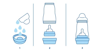 - Pas përfundimit të procesit, shishja Easy Start mbetet e dezinfektuar deri në 48 orë pas vetë-sterilizimit në mikrovalë, me kusht që të mbetet e montuar siç e kemi treguar në Hapin 3.